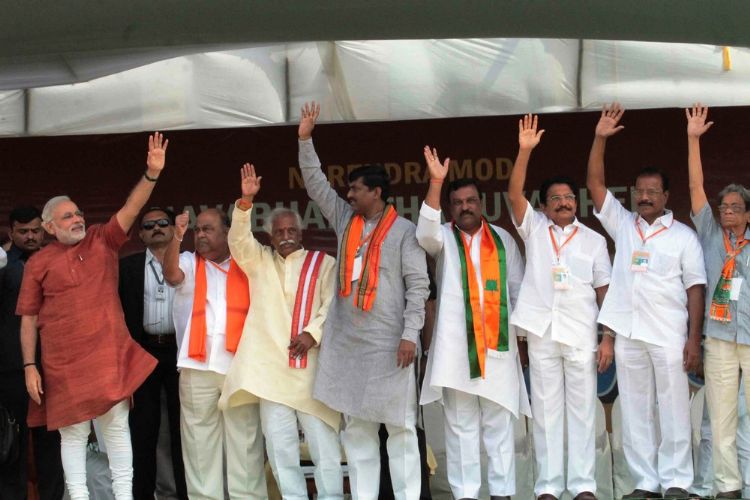 BJP's national election campaign chief Narendra Modi addressing massive public meeting in Hyderabad at Lal Bahadur stadium on Sunday. AP state BJP president Kishan Reddy, former Union Minister Bandru Dattatreya, MP Venkaiah Naidu were present.
