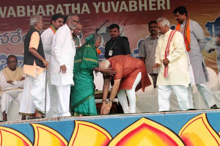 BJP's national election campaign chief Narendra Modi addressing massive public meeting in Hyderabad at Lal Bahadur stadium on Sunday. AP state BJP president Kishan Reddy, former Union Minister Bandru Dattatreya, MP Venkaiah Naidu were present.