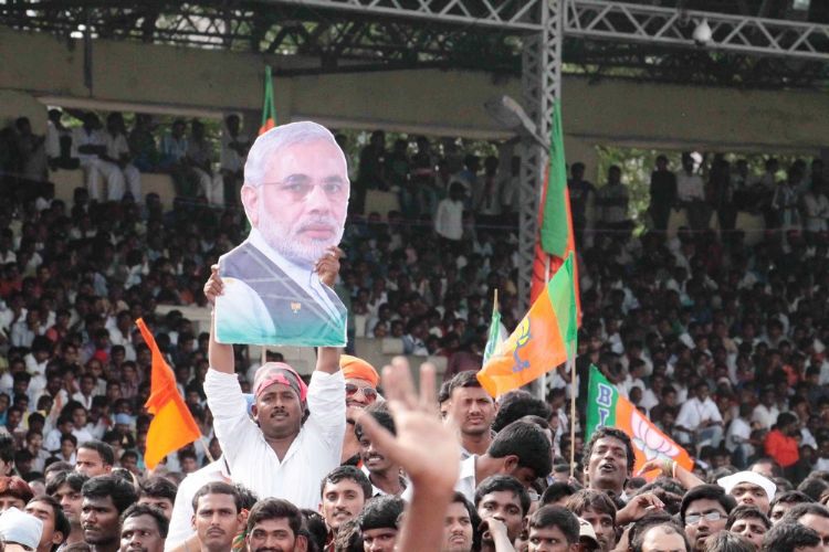 BJP's national election campaign chief Narendra Modi addressing massive public meeting in Hyderabad at Lal Bahadur stadium on Sunday. AP state BJP president Kishan Reddy, former Union Minister Bandru Dattatreya, MP Venkaiah Naidu were present.