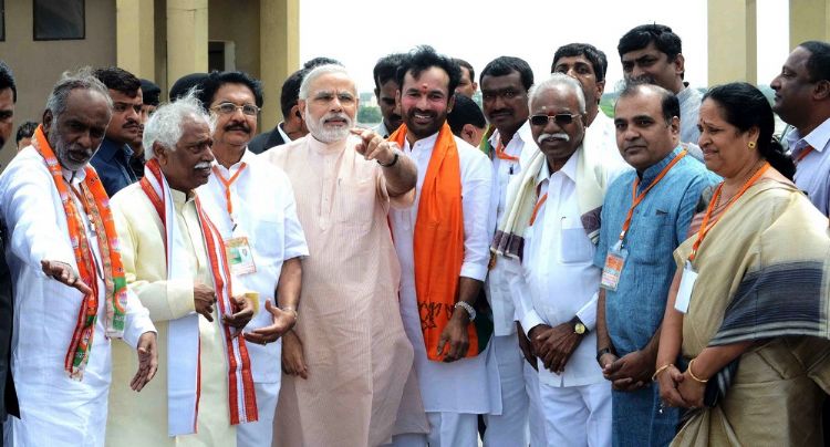 BJP's national election campaign chief Narendra Modi addressing massive public meeting in Hyderabad at Lal Bahadur stadium on Sunday. AP state BJP president Kishan Reddy, former Union Minister Bandru Dattatreya, MP Venkaiah Naidu were present.