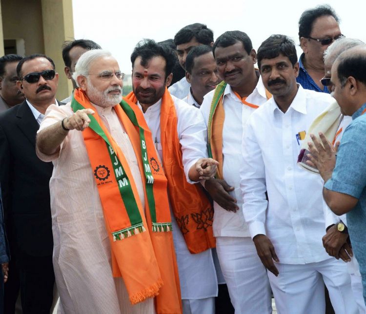 BJP's national election campaign chief Narendra Modi addressing massive public meeting in Hyderabad at Lal Bahadur stadium on Sunday. AP state BJP president Kishan Reddy, former Union Minister Bandru Dattatreya, MP Venkaiah Naidu were present.