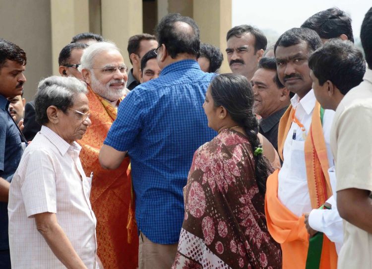 BJP's national election campaign chief Narendra Modi addressing massive public meeting in Hyderabad at Lal Bahadur stadium on Sunday. AP state BJP president Kishan Reddy, former Union Minister Bandru Dattatreya, MP Venkaiah Naidu were present.