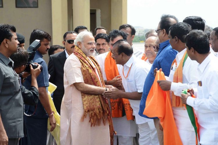 BJP's national election campaign chief Narendra Modi addressing massive public meeting in Hyderabad at Lal Bahadur stadium on Sunday. AP state BJP president Kishan Reddy, former Union Minister Bandru Dattatreya, MP Venkaiah Naidu were present.