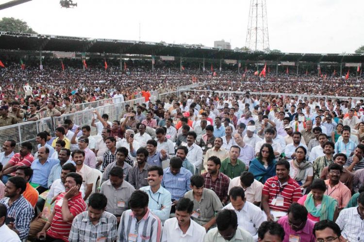 BJP's national election campaign chief Narendra Modi addressing massive public meeting in Hyderabad at Lal Bahadur stadium on Sunday. AP state BJP president Kishan Reddy, former Union Minister Bandru Dattatreya, MP Venkaiah Naidu were present.