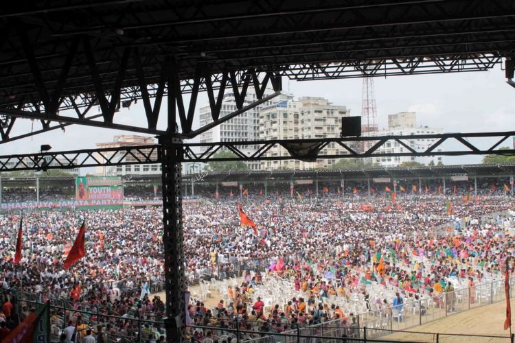 BJP's national election campaign chief Narendra Modi addressing massive public meeting in Hyderabad at Lal Bahadur stadium on Sunday. AP state BJP president Kishan Reddy, former Union Minister Bandru Dattatreya, MP Venkaiah Naidu were present.