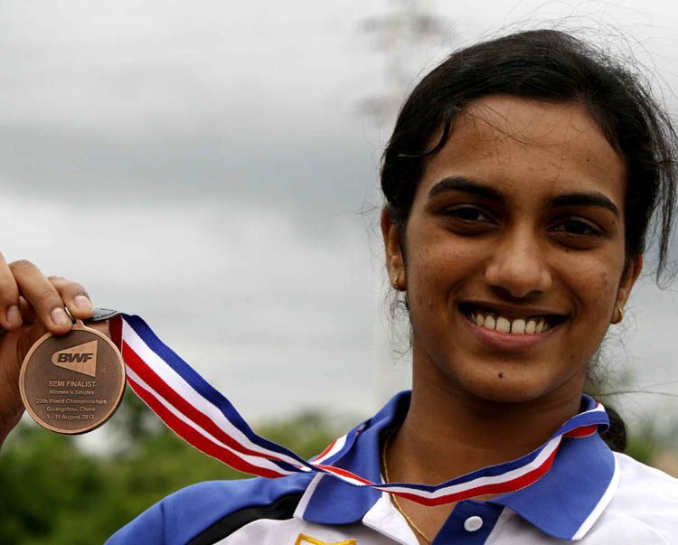 World Badminton championship bronze medal winner PV Sindhu shares a moment of joy with her coach Gopichand and family members here on Tuesday. Sindhu, a telugu girl, is the first Indian woman to achieve this feat.