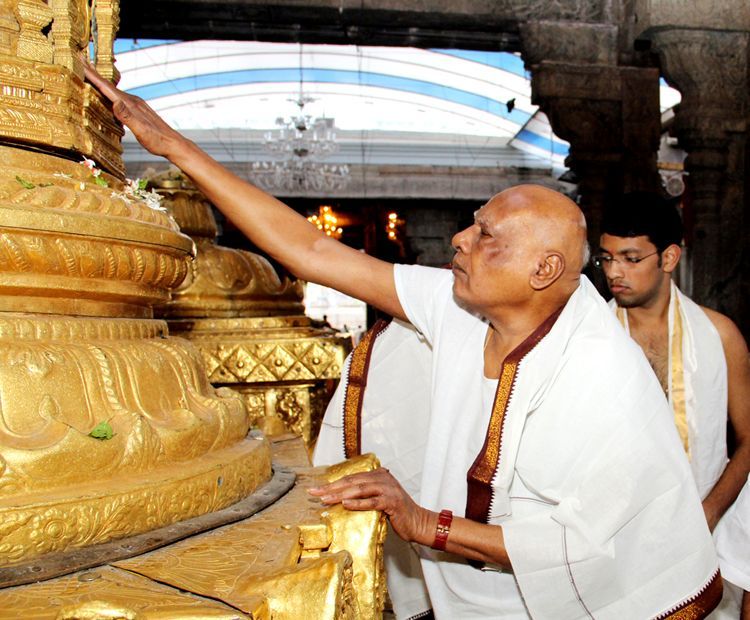 Tamilnadu Governer K.Rosaiah offering prayers at Tirumala shrine on Tuesday. Rosaih visited the temple along with family members.