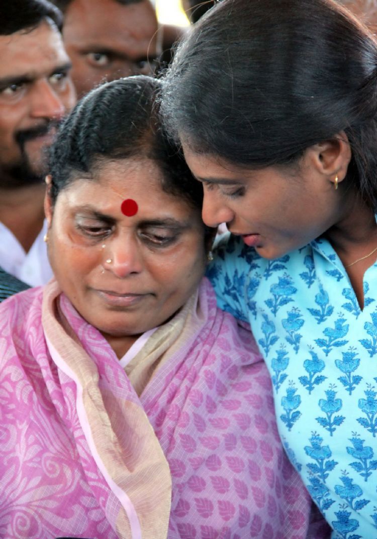 YSRCP hon. president Smt YS VIjayamma and her daughter Smt. Sharmila along with family members offering prayers at the samadhi of Dr. YS Rajasekhara Reddy on his 4th vardhanti on Monday at Idupulapaya in YSR Kadapa district.