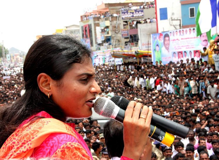 YSRCP leader Smt. Sharmila speaking at a huge public meeting held at Kadiri in Anatapuram dist on Wednesday as part of her Samaikya Sankaharavam Bus Yatra.