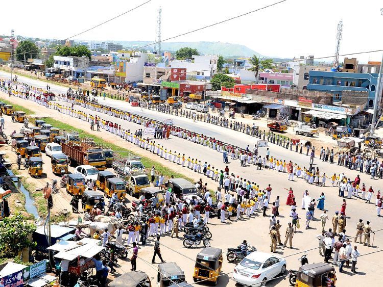Thousands of students formed a human chain in Vijayawada on Thursday in protest against bifurcation of Andhra Pradesh.