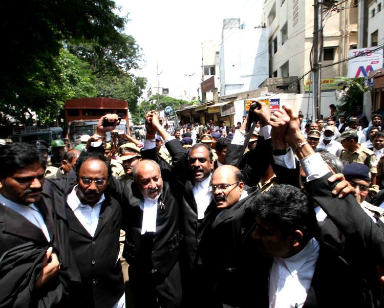 Tension grips the surroundings of AP High Court on Friday when Advocates of Telangana attacked their Seemandhra counterparts. This led to clash between the two groups and created panic as some lawyers running into the court hall to avoid being attacked. Police took them into custody and were moved to police station. The cops also shut all the gates of the AP High Court to prevent lawyers from going out.