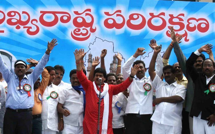 Samaikyandhra Parirakshana Vedika's first ever public meeting in the name of Save Andhra Pradesh held at Hyderabad on Saturday in which APNGOs, leaders and representatives of Teachers’ Associations and RTC Unions participated in large numbers. The atmosphere is vibrant with the slogans of Jai Samaikyandhra.