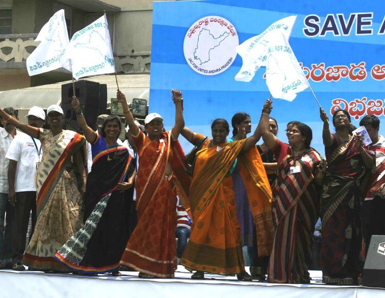 Samaikyandhra Parirakshana Vedika's first ever public meeting in the name of Save Andhra Pradesh held at Hyderabad on Saturday in which APNGOs, leaders and representatives of Teachers’ Associations and RTC Unions participated in large numbers. The atmosphere is vibrant with the slogans of Jai Samaikyandhra.
