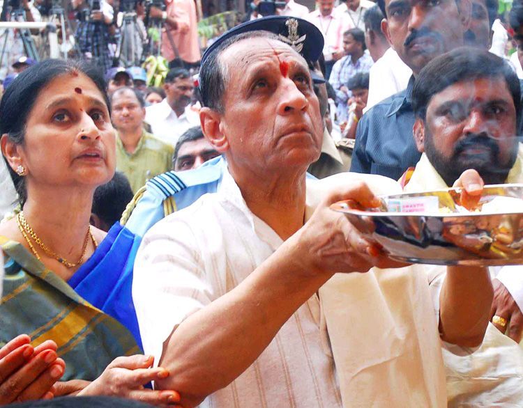 Governor Narasimhan along with his wife offer prayers to Khairatabad Ganesh on the eve of Vinayaka Chaviti in Hyderabad.