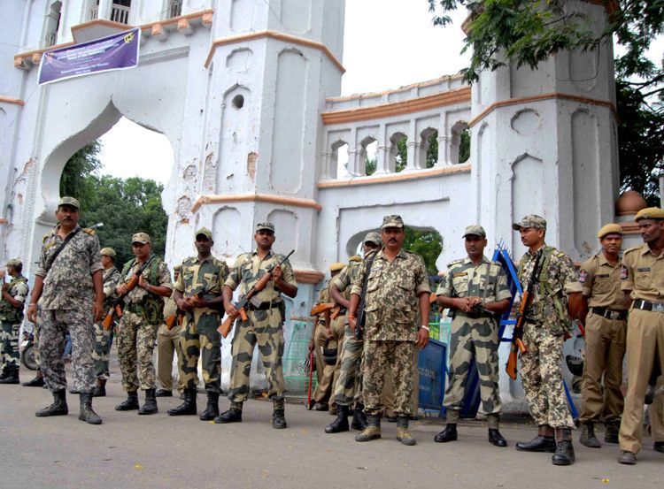 Hyderabad police made heavy security arrangements in view of the Ganesh Nimajjanam on Wednesday. Large number of para - military personnel was posted at sensitive places of the city. Heavy duty cranes were deployed at Hussain Sager for immersion of Ganesh Idols.