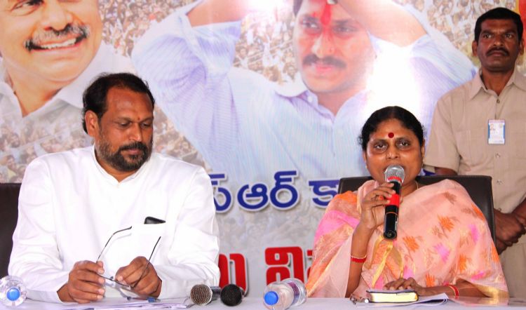 YSRCP hon. president Smt. YS Vijayamma, Smt. Sharmila and party PAC co-ordinator Konatala Ramakrishna and PAC member Bajireddy Govardhan at party's extended meeting held at YSRCP central office in Hyderabad on Saturday