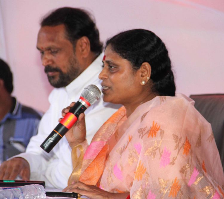 YSRCP hon. president Smt. YS Vijayamma, Smt. Sharmila and party PAC co-ordinator Konatala Ramakrishna and PAC member Bajireddy Govardhan at party's extended meeting held at YSRCP central office in Hyderabad on Saturday