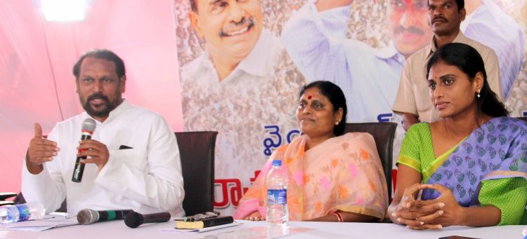 YSRCP hon. president Smt. YS Vijayamma, Smt. Sharmila and party PAC co-ordinator Konatala Ramakrishna and PAC member Bajireddy Govardhan at party's extended meeting held at YSRCP central office in Hyderabad on Saturday