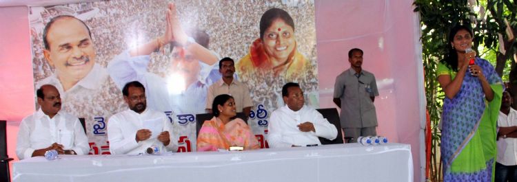 YSRCP hon. president Smt. YS Vijayamma, Smt. Sharmila and party PAC co-ordinator Konatala Ramakrishna and PAC member Bajireddy Govardhan at party's extended meeting held at YSRCP central office in Hyderabad on Saturday