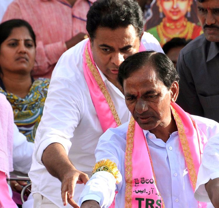 Telangana Rashtra Samiti president K. Chandrasekhar Rao at the ‘Sakala Jana Bheri’ meeting in Hyderabad on Sunday.