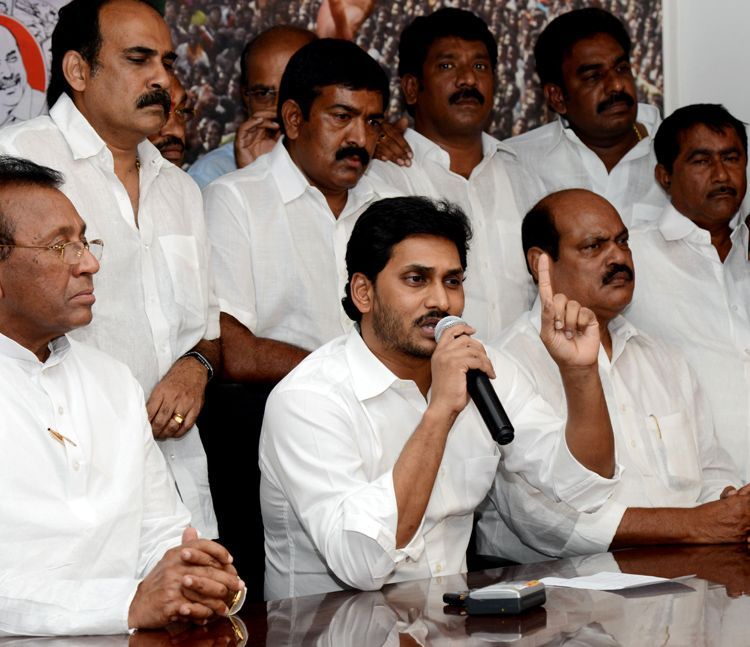 YSR Congress president Y S Jagn Mohan Reddy addressing media first time after he got released from jail at his residence in Lotus Pond, Hyderabad on Monday.