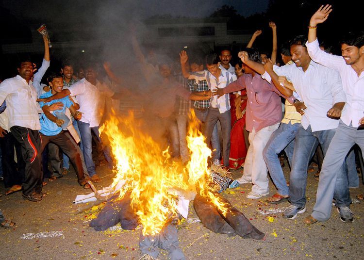 Andhra University Students stages a massive protest march in Visakhapatnam on Sunday and burnt the effigies of Sonia, Digvijay and Shinde.