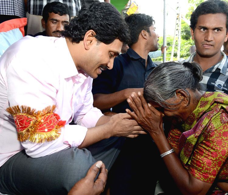 YSR Congress president YS Jagan Mohan Reddy whose indefinete fast enters second day on Sunday seen talking to visitors cheerfully.