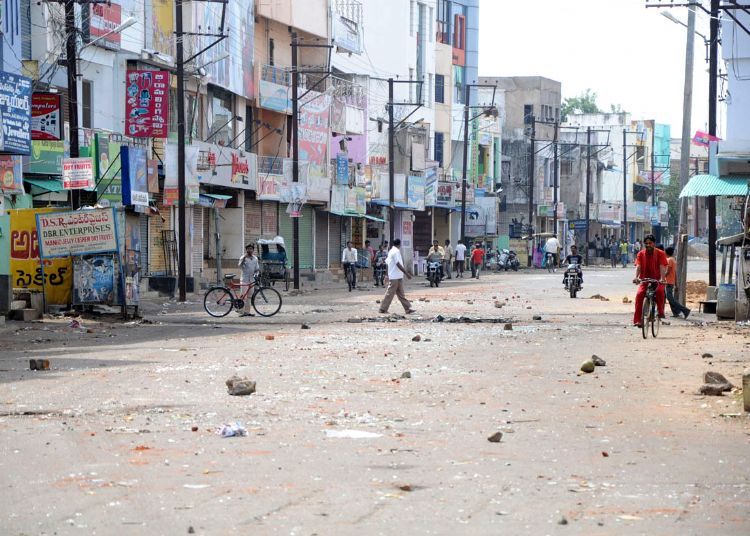 Viziangaram known to be a peace loving town turns into a battle ground with unprecedented protests and vandalism leading to imposition of curfew. Major roads in the town strewn with stones and pieces of glass all over.