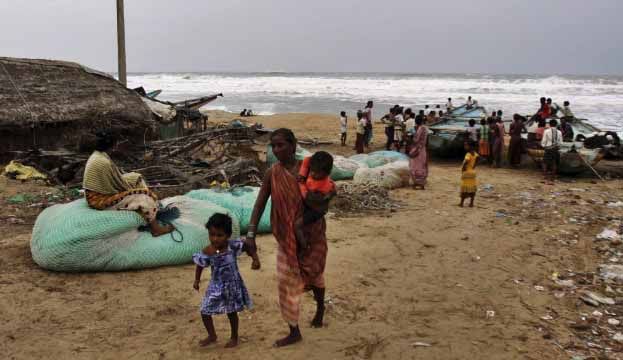 Fishermen getting ready to evacuate the village with their belongings a few hours ahead of Cyclone Phailin makes a land fall at Gopalpur in Odisha on Saturday.