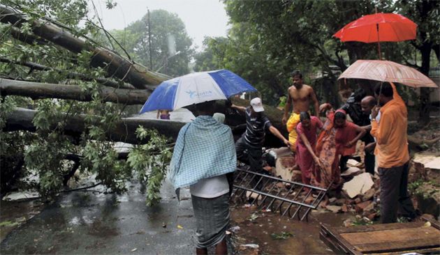 Fishermen getting ready to evacuate the village with their belongings a few hours ahead of Cyclone Phailin makes a land fall at Gopalpur in Odisha on Saturday.