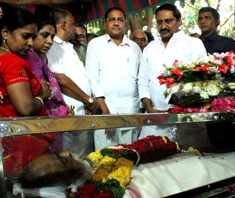 Chief Minister N Kiran Kumar Reddy, TDP chief N Chandrababu Naidu paying floral tributes to renowned Telugu writer and Jnanapith award recipient Ravuri Bharadwaja here on Saturday.