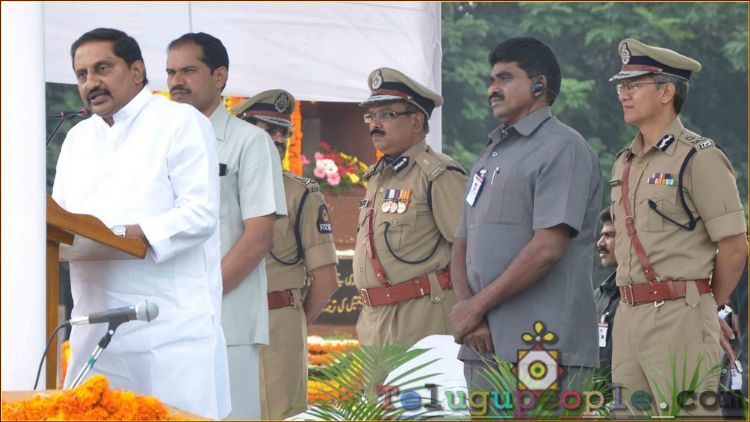 Chief Minister Kiran kumar Reddy laying wreath on police martyrs memorial at Gousha Mahel on 21st oct policeman Gun down two minute observed silent for homage on the occasion of Police commemorative day parade.