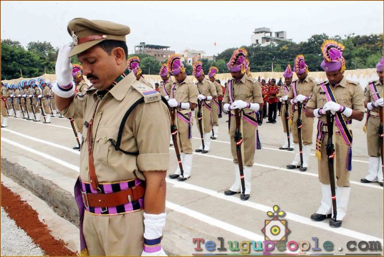 Chief Minister Kiran kumar Reddy laying wreath on police martyrs memorial at Gousha Mahel on 21st oct policeman Gun down two minute observed silent for homage on the occasion of Police commemorative day parade.