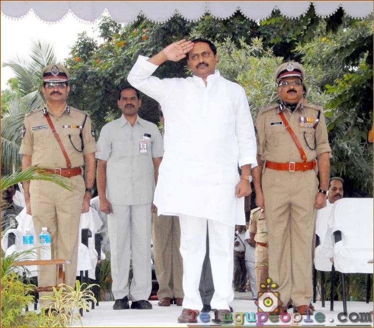 Chief Minister Kiran kumar Reddy laying wreath on police martyrs memorial at Gousha Mahel on 21st oct policeman Gun down two minute observed silent for homage on the occasion of Police commemorative day parade.