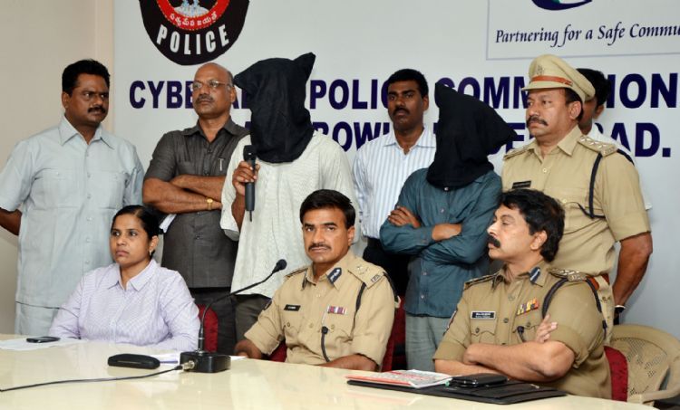 Cyberabad police producing both the accused drivers involed in Techie's abduction and rape on the outskirts of city and the Volvo car used in the crime before media persons on Tuesday.