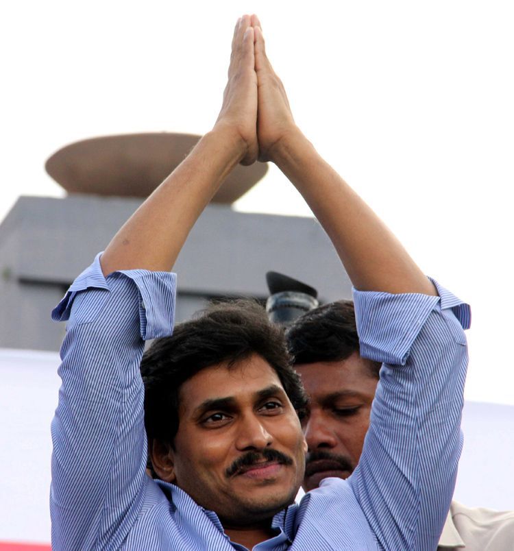 YSRCP president YS Jagan Mohan Reddy addressing a mammoth gathering of integrationists at Samaikhya Sankharavam held in LB Stadium, Hyderabad on Saturday.