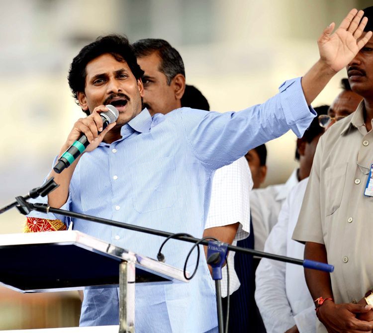 YSRCP president YS Jagan Mohan Reddy addressing a mammoth gathering of integrationists at Samaikhya Sankharavam held in LB Stadium, Hyderabad on Saturday.