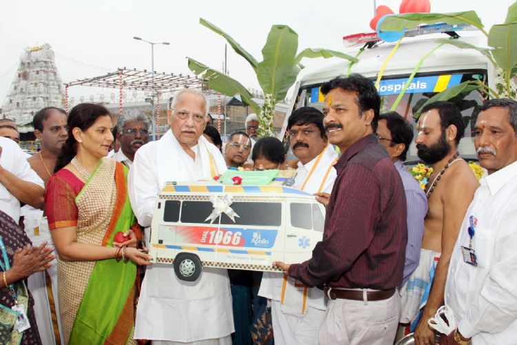 The Apollo Hospitals Chairman Sri Pratap C Reddy has donated Rs. 35 lakhs worth state of art ambulance to TTD on Sunday morning infront of Sri Vari Temple at Tirumala. TTD Trasnport GM Sri Sesha Reddy received the donation.