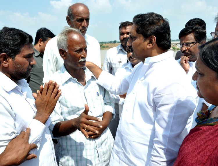Chief Minister Kiran Kumar Reddy interacting with the farmers while visiting a flood effected village in Prakasam District on Monday.