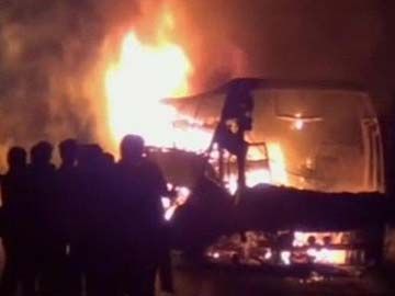 Over 40 passengers incuding four children were charred to death after a Volvo bus hit an oil tanker and burst into flames on Bangalore-Hyderabad national highway near Palem village, Kothakota mandal of Mahbubnagar district during early hours of Wednesday. Six people escaped with injuries were rushed to Apollo Hospital at DRDL in Hyderabad