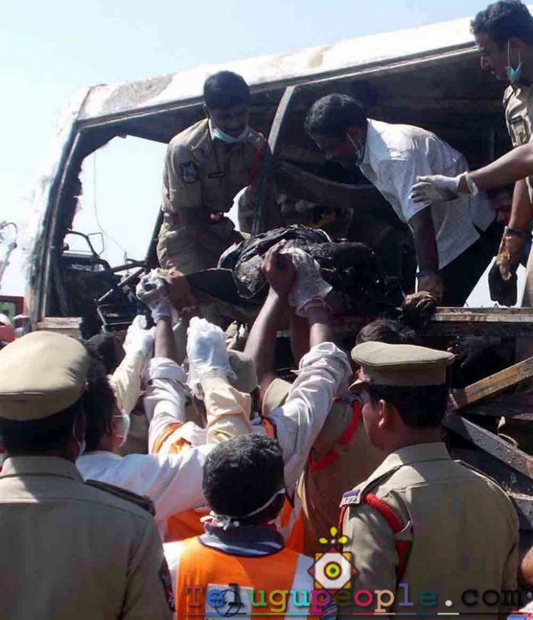 In a most horrific incident 45 passengers were charred to death after a Volvo bus they were travelling in burst into flames after hitting a road divider on Bangalore-Hyderabad national highway near Palem village, Kothakota mandal of Mahbubnagar district during early hours of Wednesday.