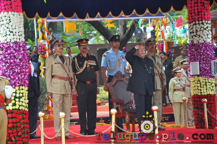 President Pranab Mukherji watches the passing out parade of IPS trainess at Sarder Vallabhbhi Patel National Police Academy in Hyderabad on Tuesday.