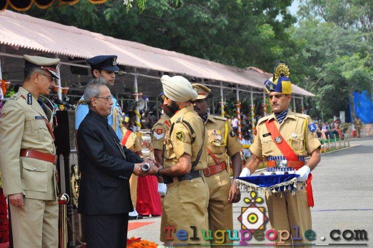 President Pranab Mukherji watches the passing out parade of IPS trainess at Sarder Vallabhbhi Patel National Police Academy in Hyderabad on Tuesday.