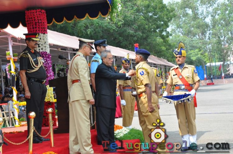 President Pranab Mukherji watches the passing out parade of IPS trainess at Sarder Vallabhbhi Patel National Police Academy in Hyderabad on Tuesday.