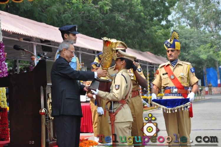 President Pranab Mukherji watches the passing out parade of IPS trainess at Sarder Vallabhbhi Patel National Police Academy in Hyderabad on Tuesday.