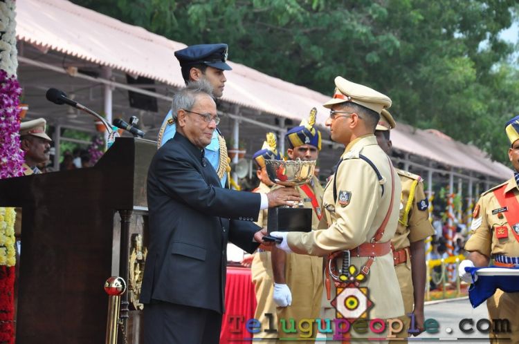 President Pranab Mukherji watches the passing out parade of IPS trainess at Sarder Vallabhbhi Patel National Police Academy in Hyderabad on Tuesday.