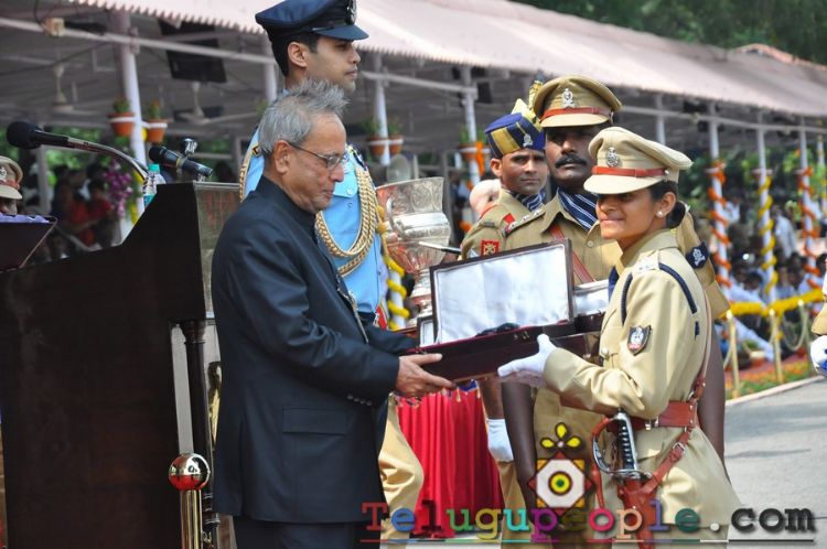 President Pranab Mukherji watches the passing out parade of IPS trainess at Sarder Vallabhbhi Patel National Police Academy in Hyderabad on Tuesday.