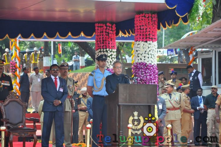 President Pranab Mukherji watches the passing out parade of IPS trainess at Sarder Vallabhbhi Patel National Police Academy in Hyderabad on Tuesday.