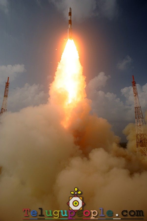 PSLV-C25 launch vehicle carrying the Mars Orbiter probe as its payload lifting off from the launch pad in Sriharikota.