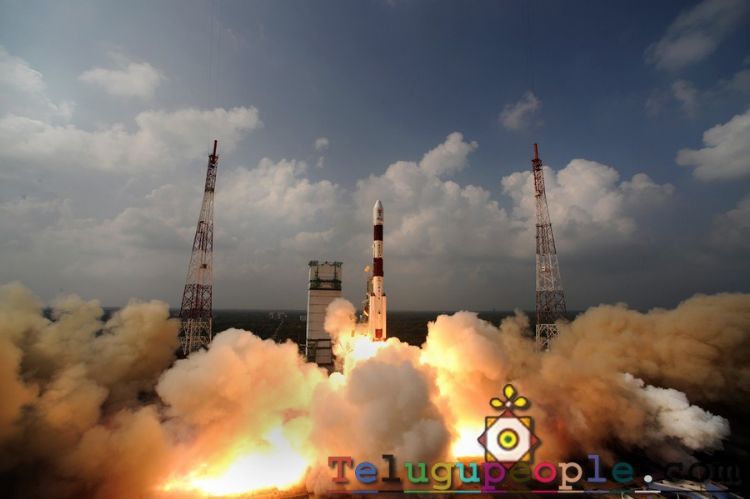 PSLV-C25 launch vehicle carrying the Mars Orbiter probe as its payload lifting off from the launch pad in Sriharikota.